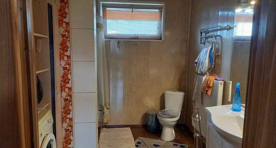 Площадь дома составляет 133 квадрата, а его особенностью является наличие мансардного этажа с просторными окнами, что создает уют и светлое пространство. На первом этаже расположены гостиная с камином, кухня и комфортабельный санузел с душевой кабиной и стиральной машиной – именно эти комнаты можно увидеть на фотографиях.